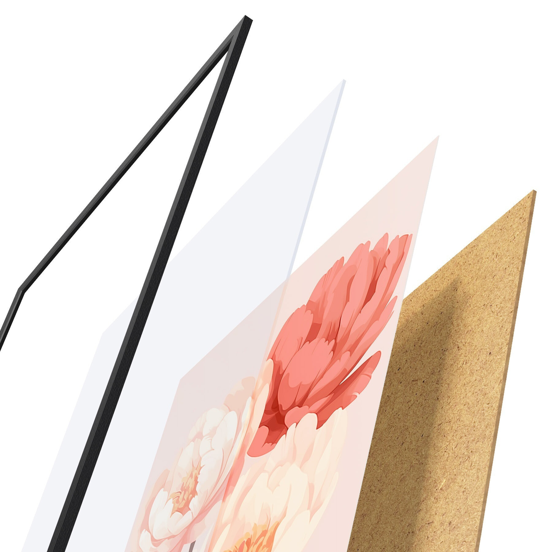 Plakát se skládá z rámu, plexiskla, tištěného obrazu a dřevotřískového podkladu. Díky úchytům na zadní straně lze plakát ihned zavěsit na zeď.