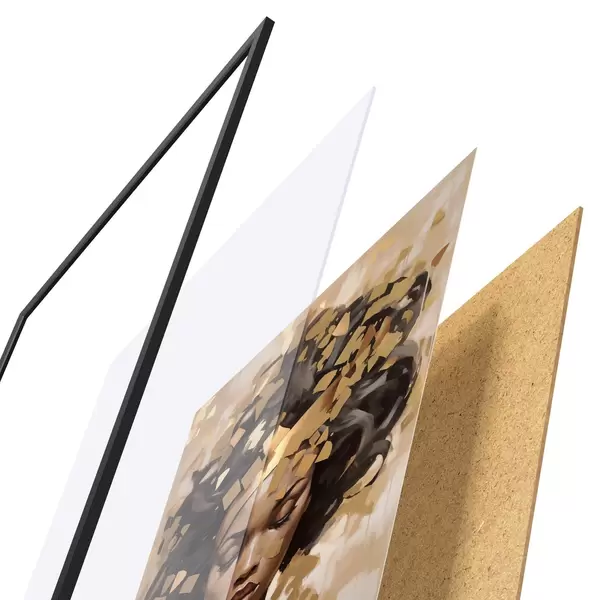 Plakát se skládá z rámu, plexiskla, tištěného obrazu a dřevotřískového podkladu. Díky úchytům na zadní straně lze plakát ihned zavěsit na zeď.