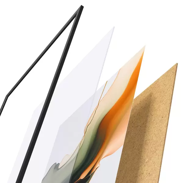 Plakát se skládá z rámu, plexiskla, tištěného obrazu a dřevotřískového podkladu. Díky úchytům na zadní straně lze plakát ihned zavěsit na zeď.