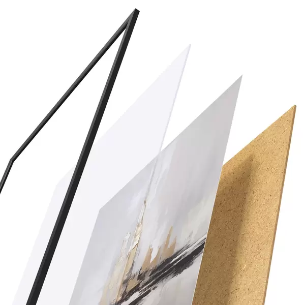 Plakát se skládá z rámu, plexiskla, tištěného obrazu a dřevotřískového podkladu. Díky úchytům na zadní straně lze plakát ihned zavěsit na zeď.