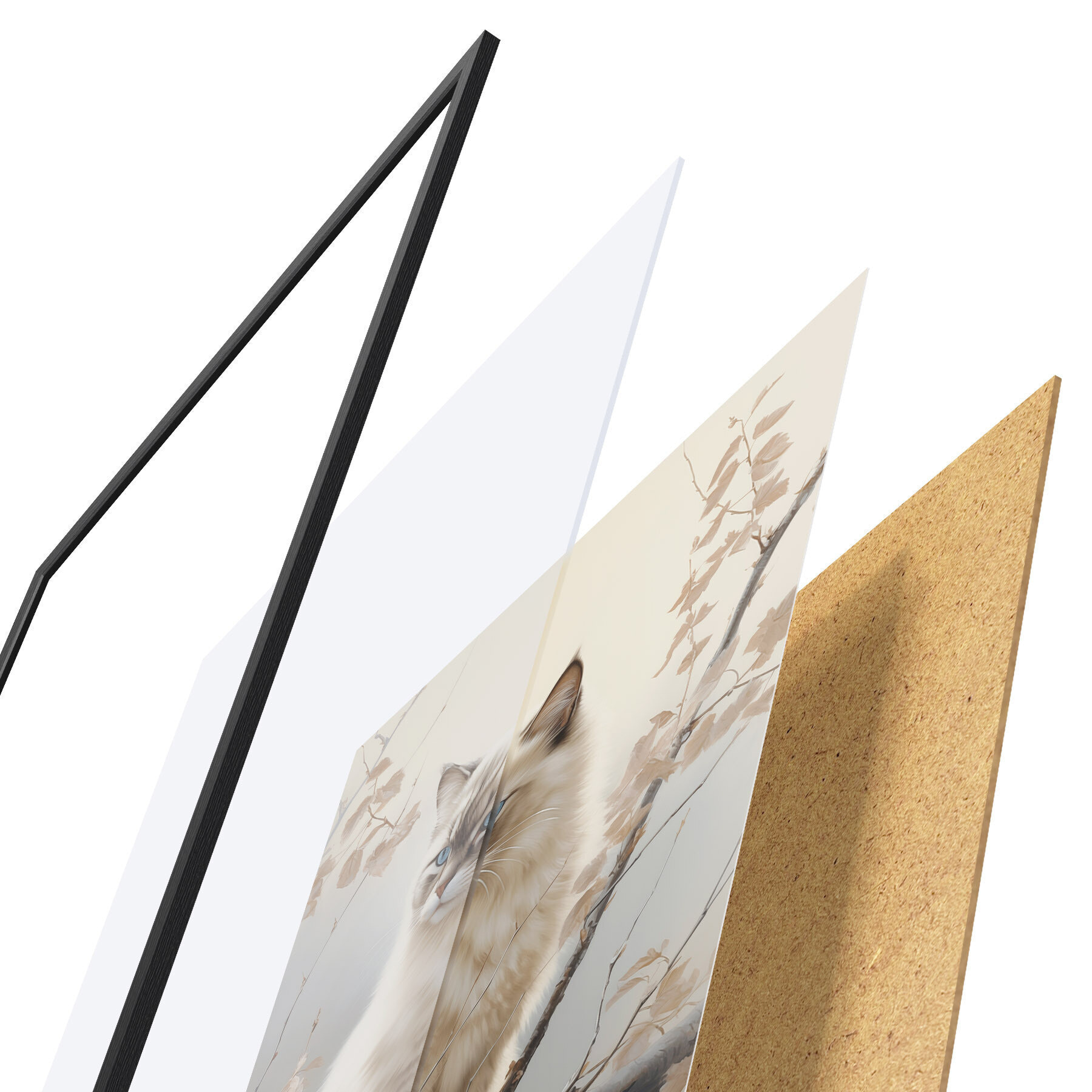 Plakát se skládá z rámu, plexiskla, tištěného obrazu a dřevotřískového podkladu. Díky úchytům na zadní straně lze plakát ihned zavěsit na zeď.