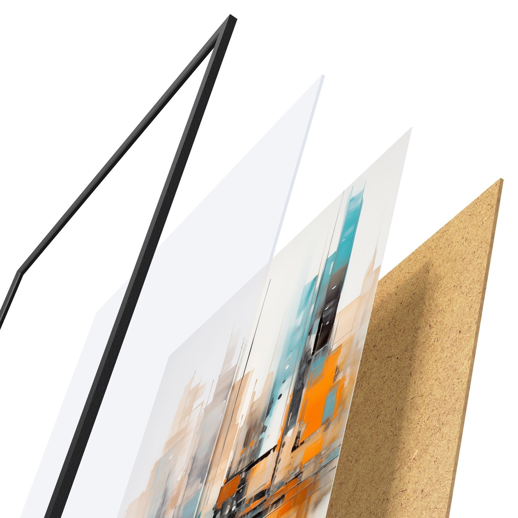 Plakát se skládá z rámu, plexiskla, tištěného obrazu a dřevotřískového podkladu. Díky úchytům na zadní straně lze plakát ihned zavěsit na zeď.