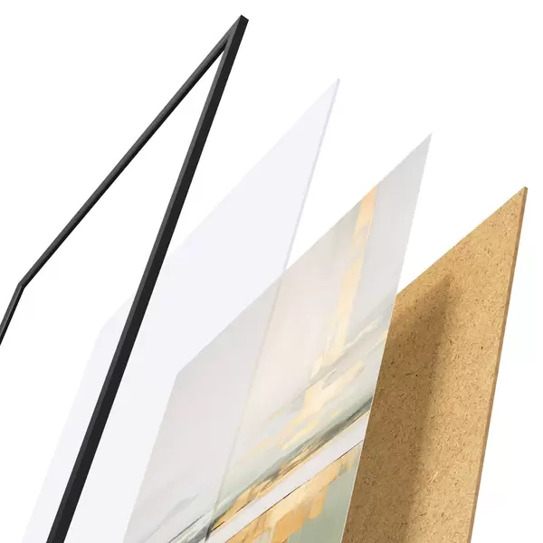 Plakát se skládá z rámu, plexiskla, tištěného obrazu a dřevotřískového podkladu. Díky úchytům na zadní straně lze plakát ihned zavěsit na zeď.