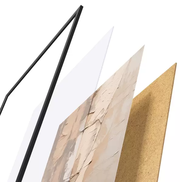 Plakát se skládá z rámu, plexiskla, tištěného obrazu a dřevotřískového podkladu. Díky úchytům na zadní straně lze plakát ihned zavěsit na zeď.