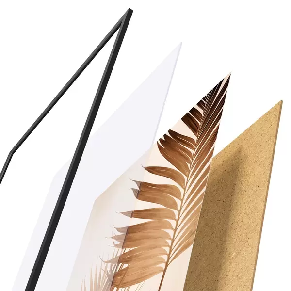 Plakát se skládá z rámu, plexiskla, tištěného obrazu a dřevotřískového podkladu. Díky úchytům na zadní straně lze plakát ihned zavěsit na zeď.