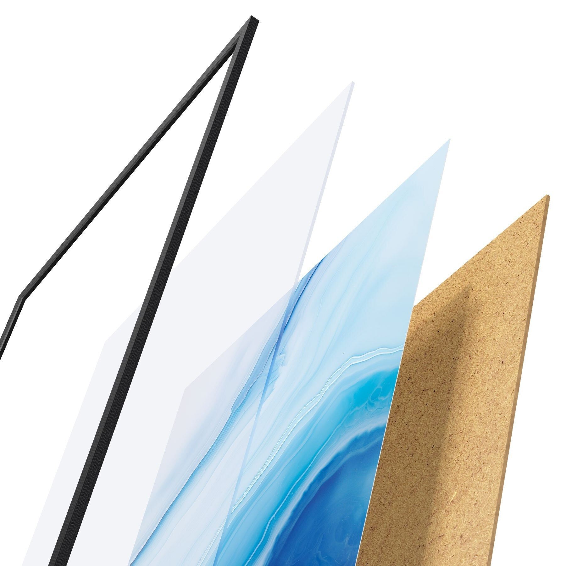 Plakát se skládá z rámu, plexiskla, tištěného obrazu a dřevotřískového podkladu. Díky úchytům na zadní straně lze plakát ihned zavěsit na zeď.