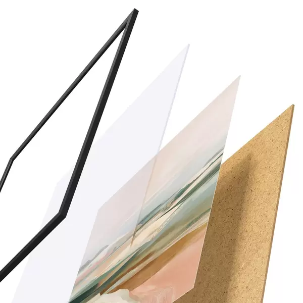 Plakát se skládá z rámu, plexiskla, tištěného obrazu a dřevotřískového podkladu. Díky úchytům na zadní straně lze plakát ihned zavěsit na zeď.