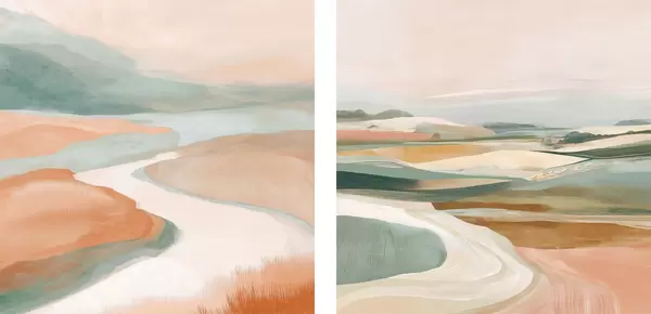 Poster Abstraktní kopce a řeka v pastelových barvách Č. d00896