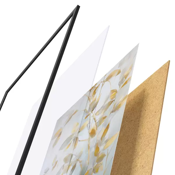 Plakát se skládá z rámu, plexiskla, tištěného obrazu a dřevotřískového podkladu. Díky úchytům na zadní straně lze plakát ihned zavěsit na zeď.