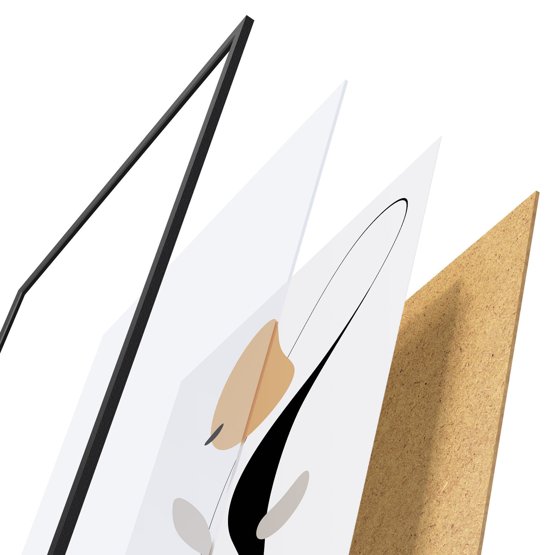 Plakát se skládá z rámu, plexiskla, tištěného obrazu a dřevotřískového podkladu. Díky úchytům na zadní straně lze plakát ihned zavěsit na zeď.