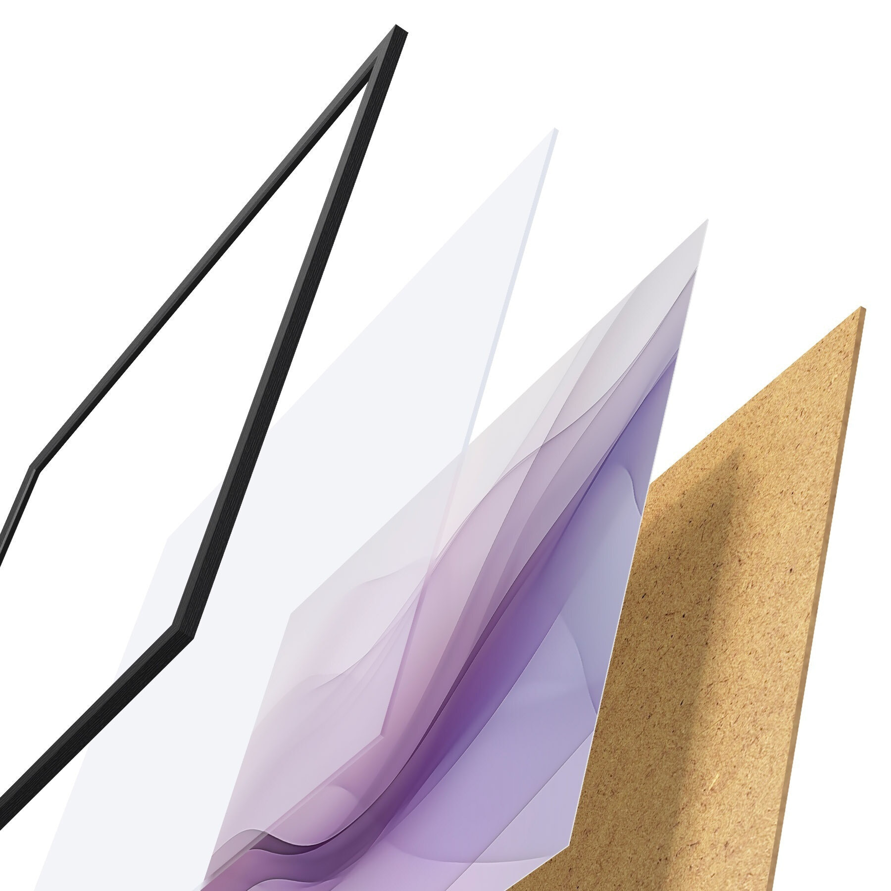 Plakát se skládá z rámu, plexiskla, tištěného obrazu a dřevotřískového podkladu. Díky úchytům na zadní straně lze plakát ihned zavěsit na zeď.