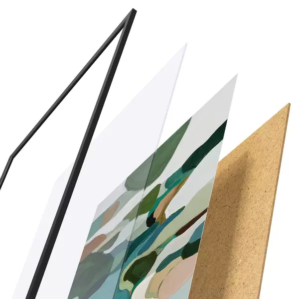 Plakát se skládá z rámu, plexiskla, tištěného obrazu a dřevotřískového podkladu. Díky úchytům na zadní straně lze plakát ihned zavěsit na zeď.
