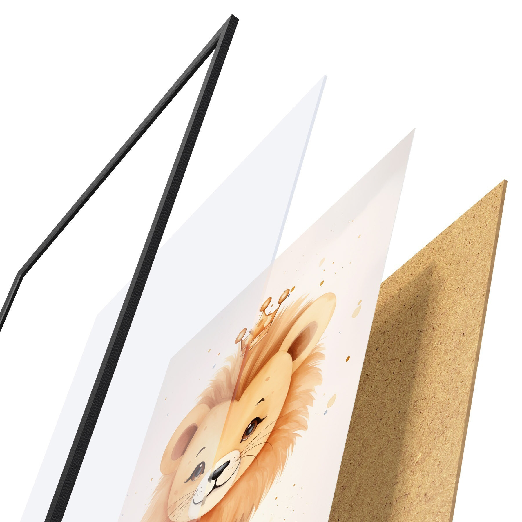 Plakát se skládá z rámu, plexiskla, tištěného obrazu a dřevotřískového podkladu. Díky úchytům na zadní straně lze plakát ihned zavěsit na zeď.