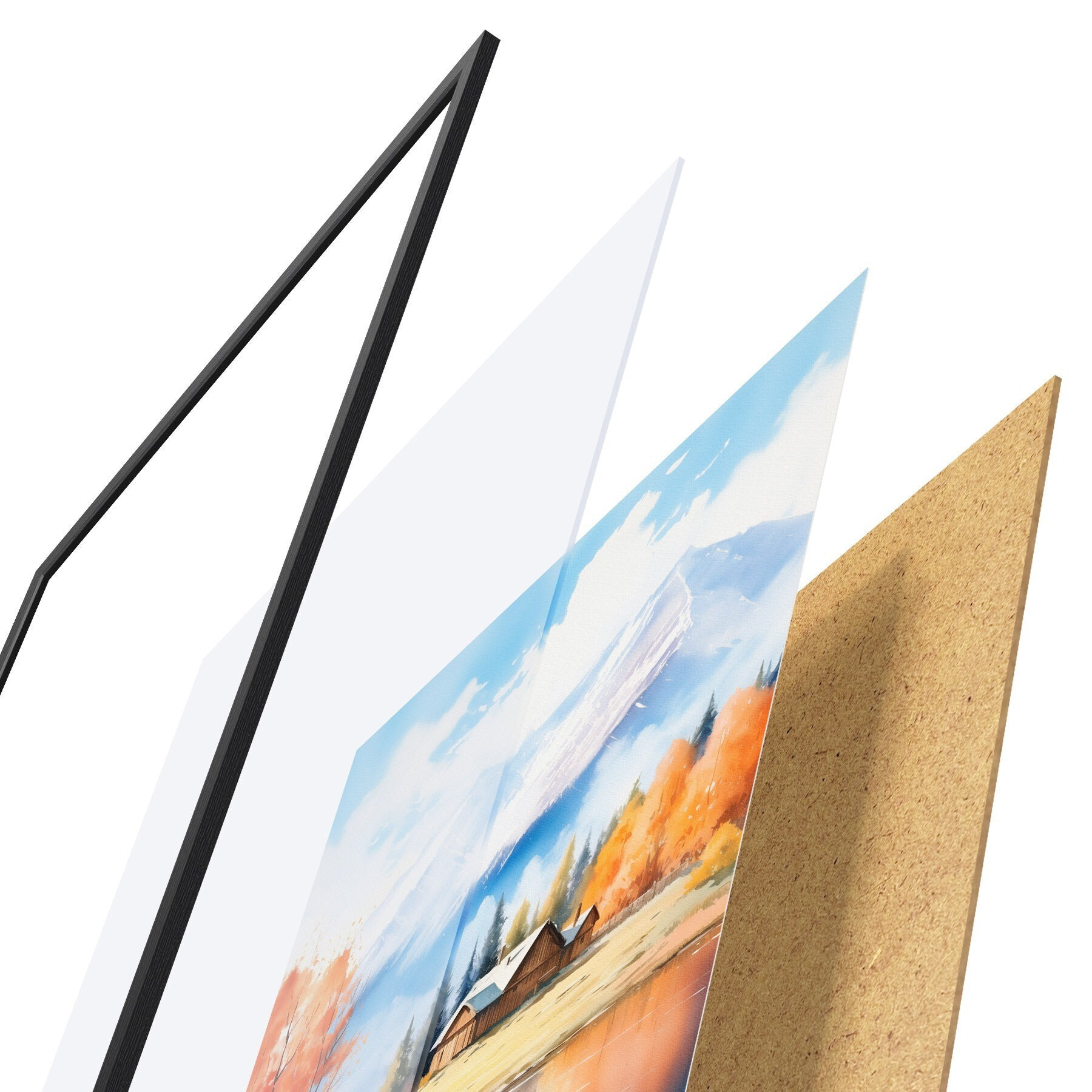 Plakát se skládá z rámu, plexiskla, tištěného obrazu a dřevotřískového podkladu. Díky úchytům na zadní straně lze plakát ihned zavěsit na zeď.