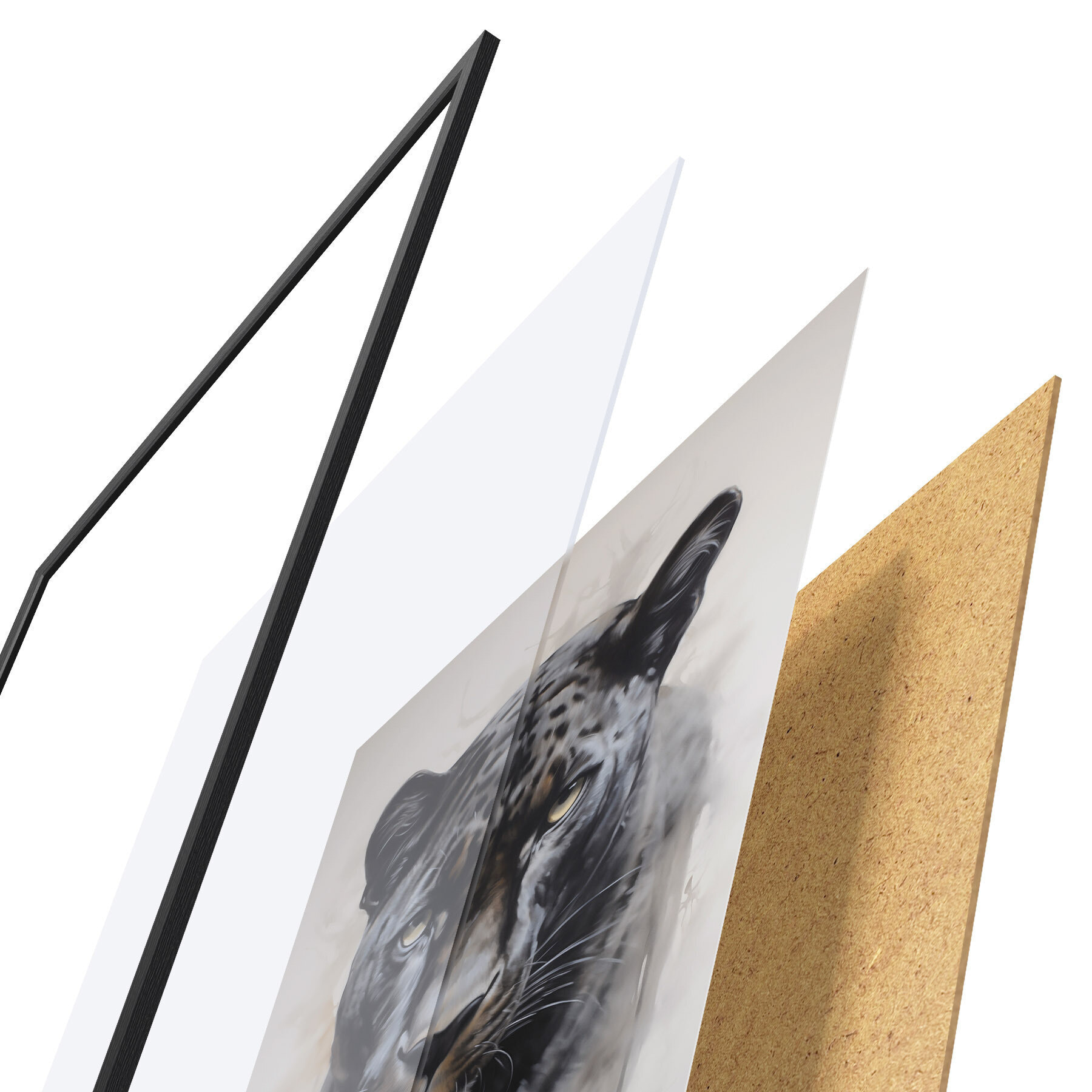 Plakát se skládá z rámu, plexiskla, tištěného obrazu a dřevotřískového podkladu. Díky úchytům na zadní straně lze plakát ihned zavěsit na zeď.
