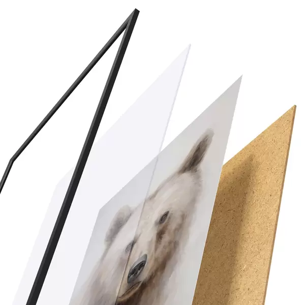 Plakát se skládá z rámu, plexiskla, tištěného obrazu a dřevotřískového podkladu. Díky úchytům na zadní straně lze plakát ihned zavěsit na zeď.