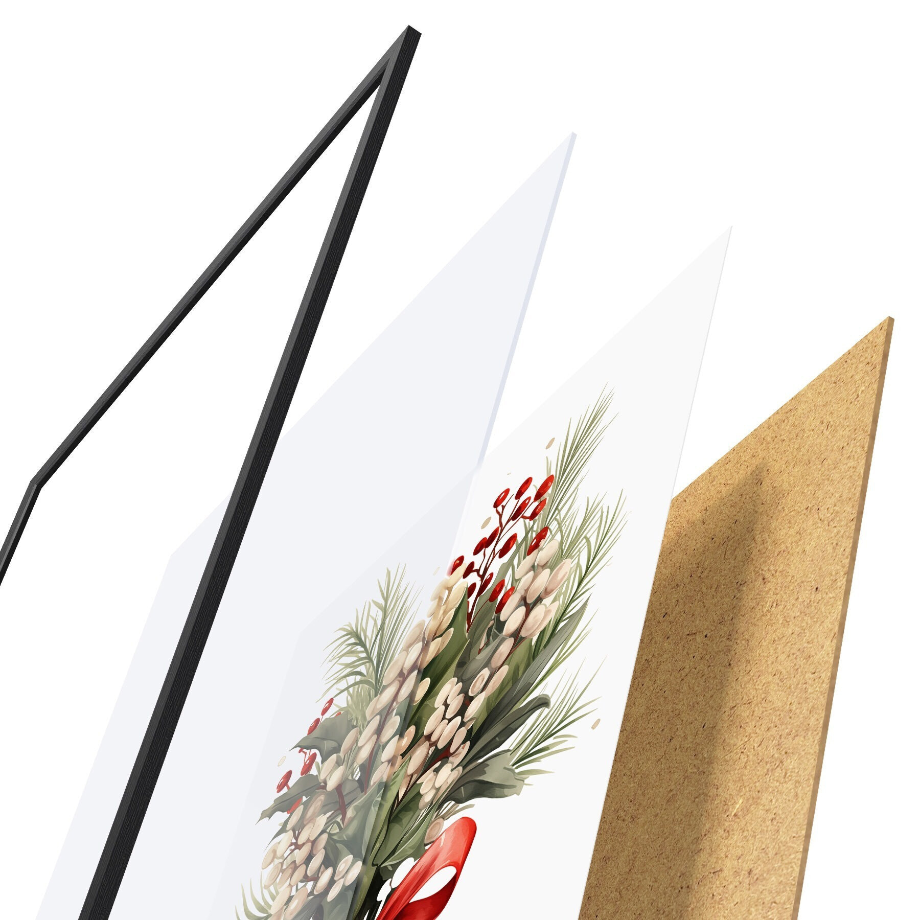 Plakát se skládá z rámu, plexiskla, tištěného obrazu a dřevotřískového podkladu. Díky úchytům na zadní straně lze plakát ihned zavěsit na zeď.