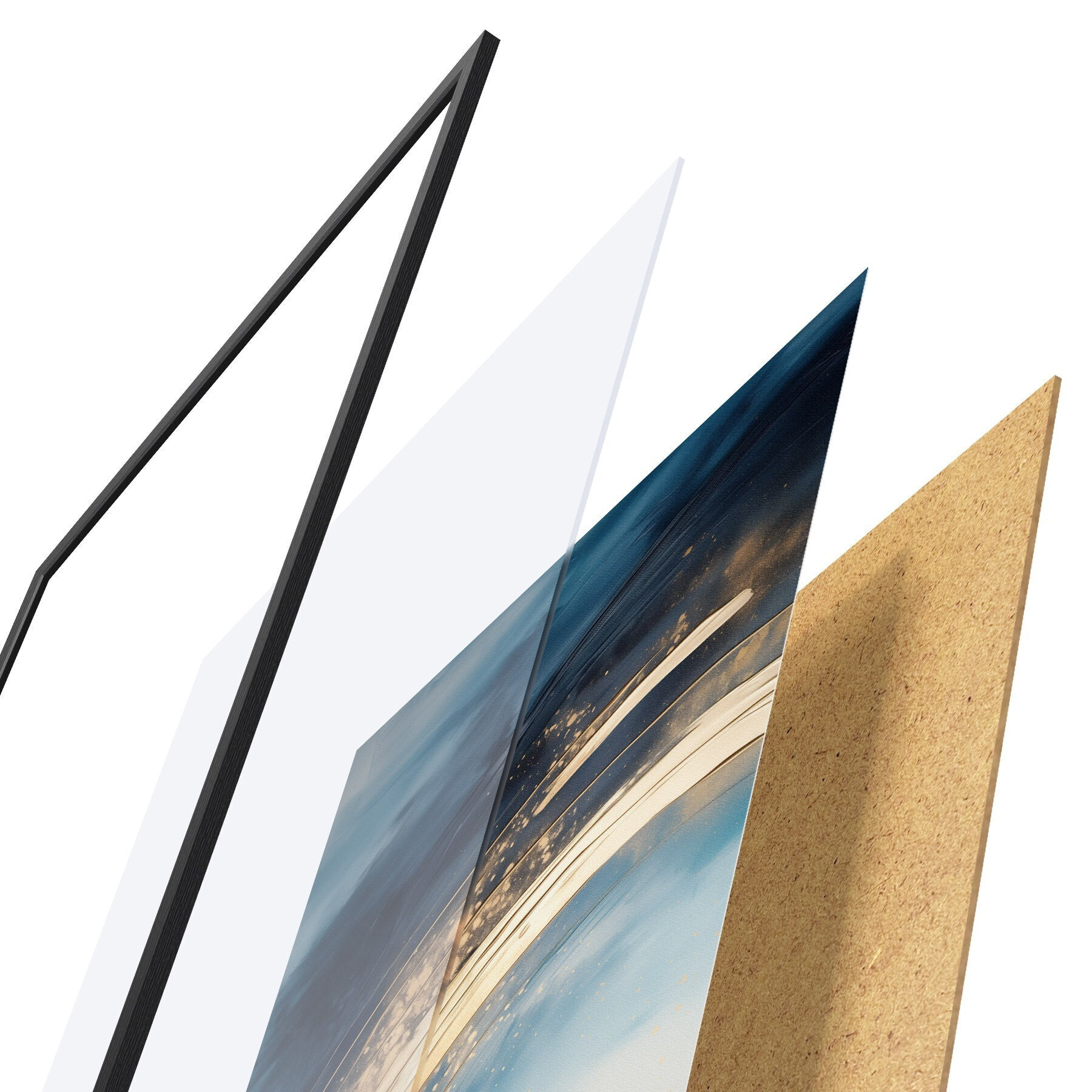 Plakát se skládá z rámu, plexiskla, tištěného obrazu a dřevotřískového podkladu. Díky úchytům na zadní straně lze plakát ihned zavěsit na zeď.