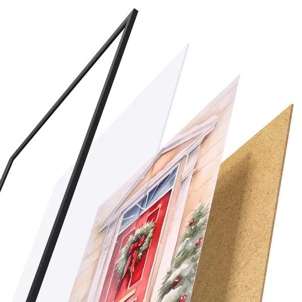 Plakát se skládá z rámu, plexiskla, tištěného obrazu a dřevotřískového podkladu. Díky úchytům na zadní straně lze plakát ihned zavěsit na zeď.
