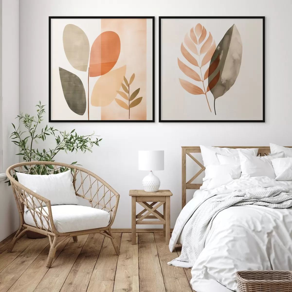 Poster Diptych s botanickými motivy v pastelových barvách Č. d00983