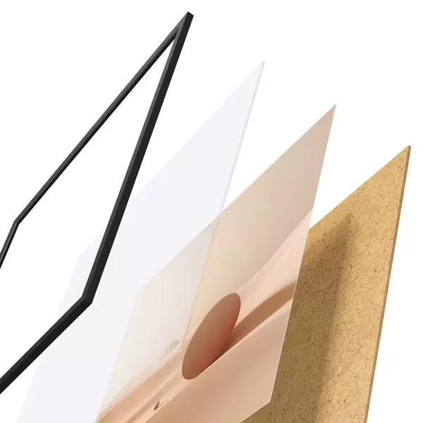 Plakát se skládá z rámu, plexiskla, tištěného obrazu a dřevotřískového podkladu. Díky úchytům na zadní straně lze plakát ihned zavěsit na zeď.
