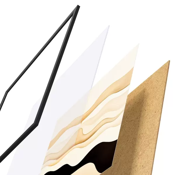 Plakát se skládá z rámu, plexiskla, tištěného obrazu a dřevotřískového podkladu. Díky úchytům na zadní straně lze plakát ihned zavěsit na zeď.