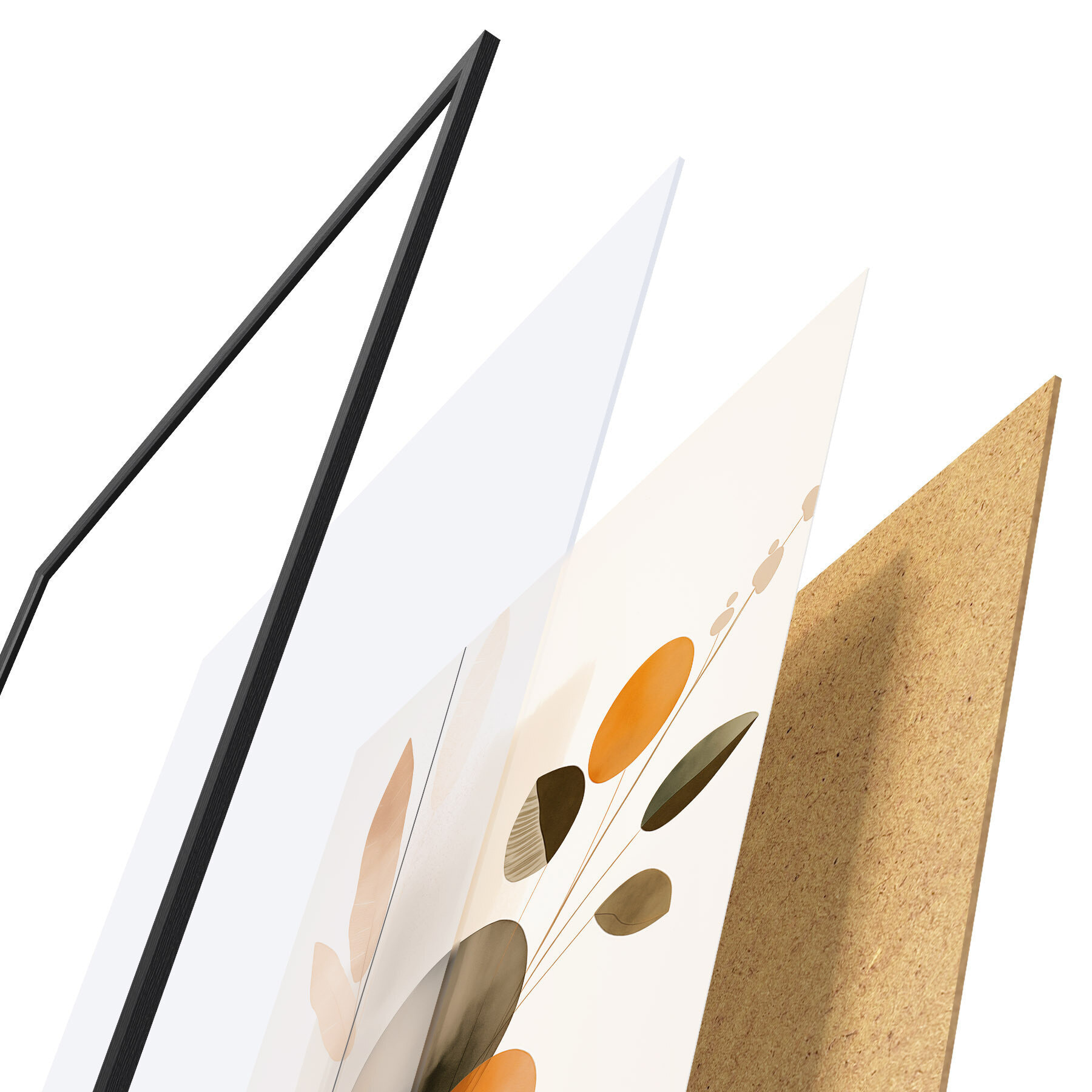 Plakát se skládá z rámu, plexiskla, tištěného obrazu a dřevotřískového podkladu. Díky úchytům na zadní straně lze plakát ihned zavěsit na zeď.