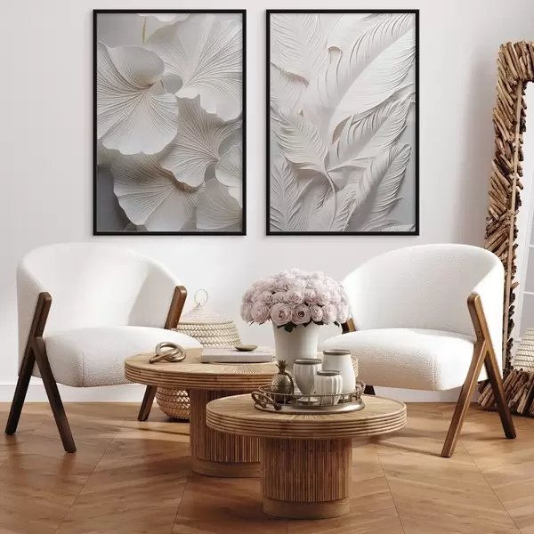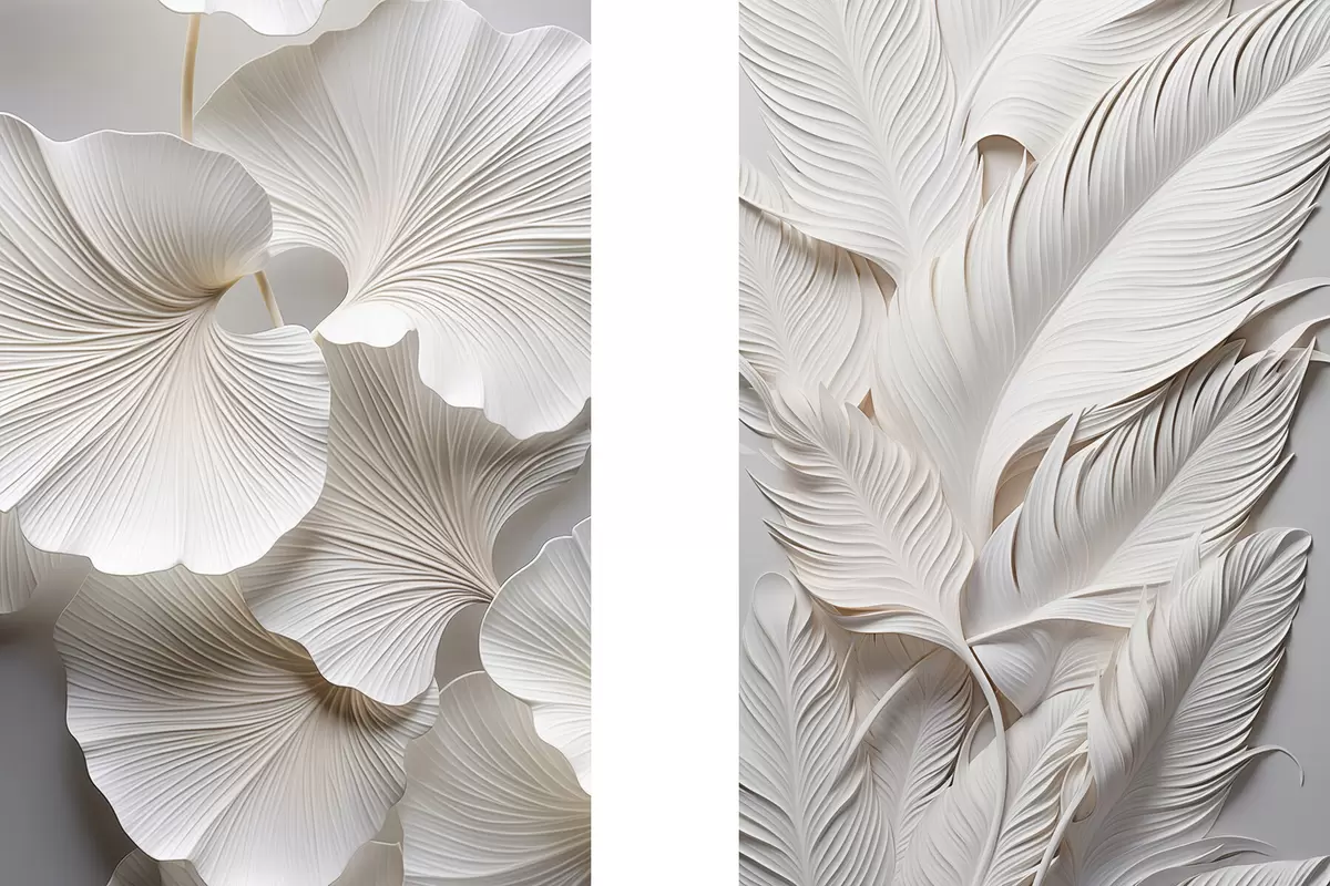 Úvodní stránkaKatalog posterůModulární plakátyPoster Bílé listy ginkga a dlouhé listy se složitými detaily, které vytvářejí texturovaný a vrstvený efekt, minimalistické umění Č. d01013