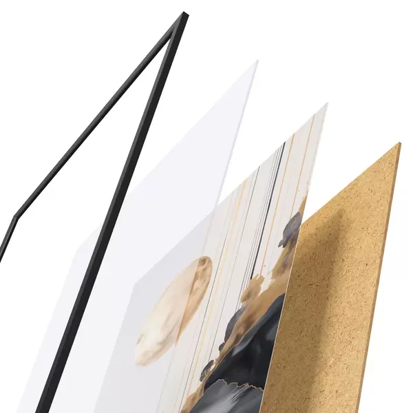 Plakát se skládá z rámu, plexiskla, tištěného obrazu a dřevotřískového podkladu. Díky úchytům na zadní straně lze plakát ihned zavěsit na zeď.