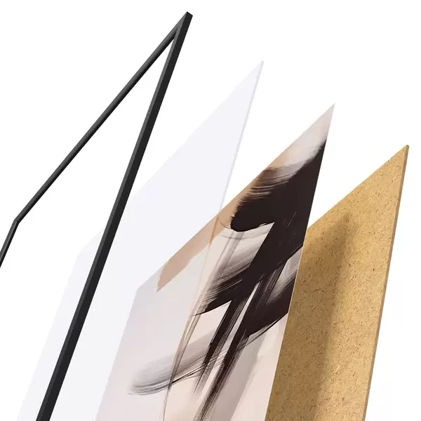 Plakát se skládá z rámu, plexiskla, tištěného obrazu a dřevotřískového podkladu. Díky úchytům na zadní straně lze plakát ihned zavěsit na zeď.