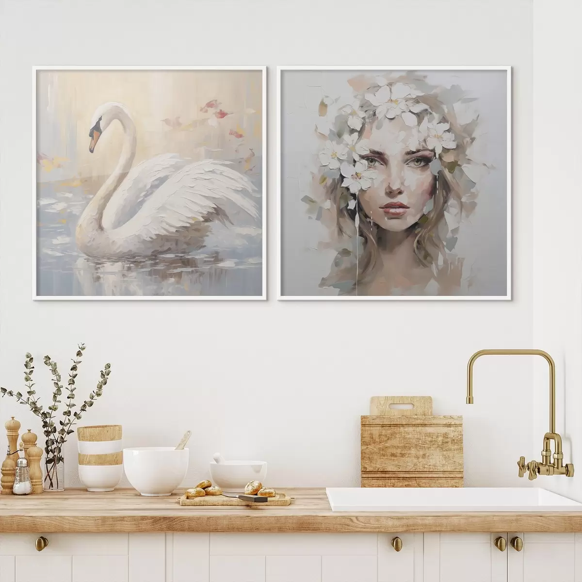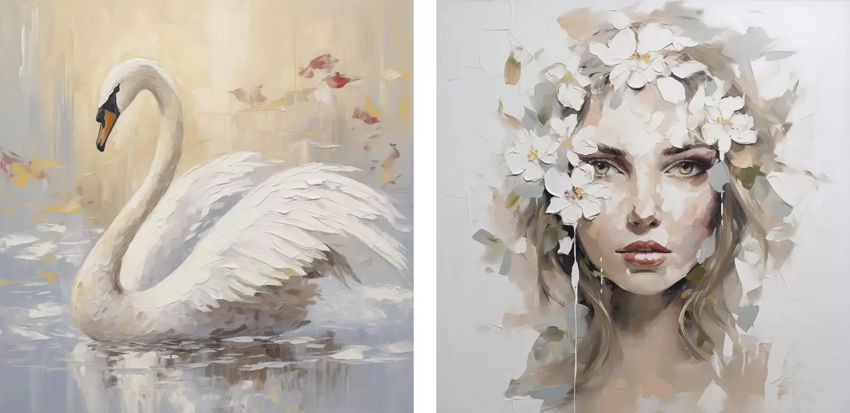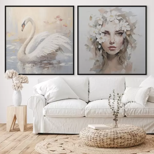 Poster Labuť a portrét dívky, imitace malby Č. d01030