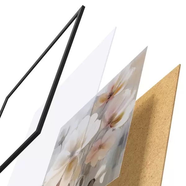 Plakát se skládá z rámu, plexiskla, tištěného obrazu a dřevotřískového podkladu. Díky úchytům na zadní straně lze plakát ihned zavěsit na zeď.
