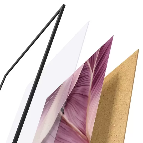 Plakát se skládá z rámu, plexiskla, tištěného obrazu a dřevotřískového podkladu. Díky úchytům na zadní straně lze plakát ihned zavěsit na zeď.