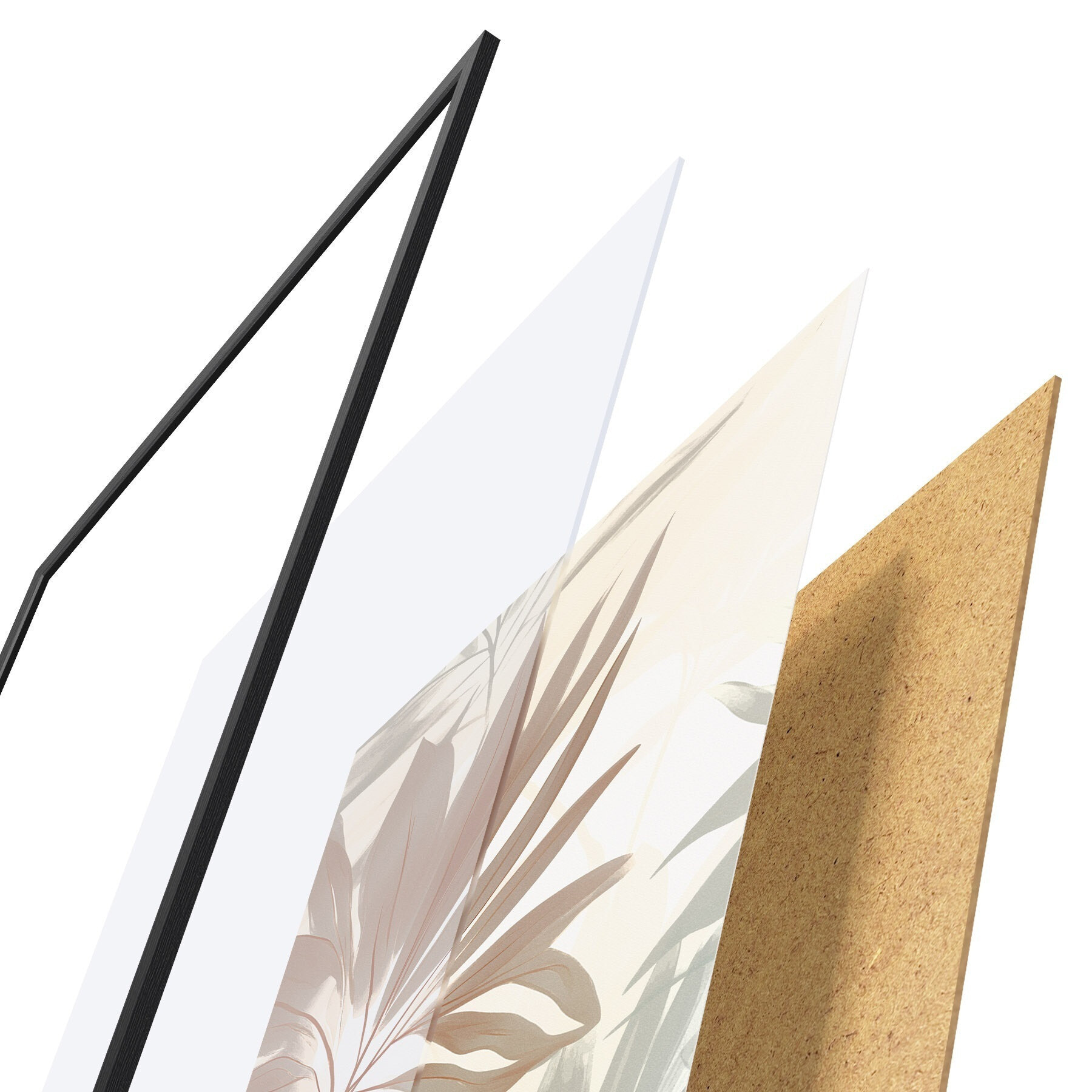 Plakát se skládá z rámu, plexiskla, tištěného obrazu a dřevotřískového podkladu. Díky úchytům na zadní straně lze plakát ihned zavěsit na zeď.