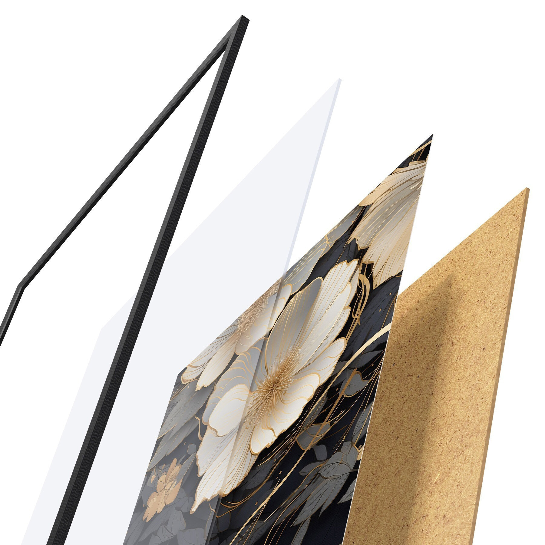 Plakát se skládá z rámu, plexiskla, tištěného obrazu a dřevotřískového podkladu. Díky úchytům na zadní straně lze plakát ihned zavěsit na zeď.