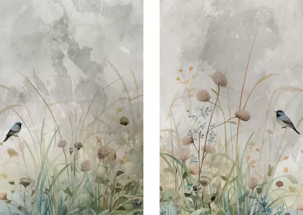 Poster Ptáci na pozadí divokých květin d01068