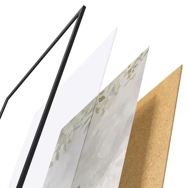 Plakát se skládá z rámu, plexiskla, tištěného obrazu a dřevotřískového podkladu. Díky úchytům na zadní straně lze plakát ihned zavěsit na zeď.