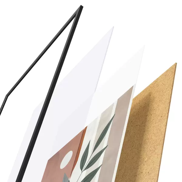 Plakát se skládá z rámu, plexiskla, tištěného obrazu a dřevotřískového podkladu. Díky úchytům na zadní straně lze plakát ihned zavěsit na zeď.