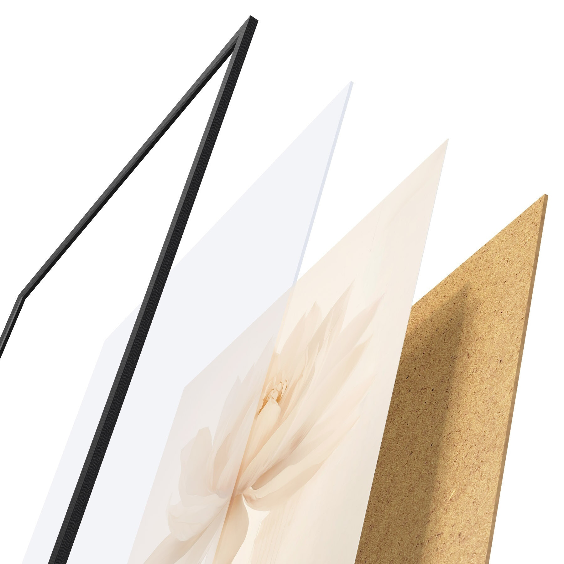 Plakát se skládá z rámu, plexiskla, tištěného obrazu a dřevotřískového podkladu. Díky úchytům na zadní straně lze plakát ihned zavěsit na zeď.
