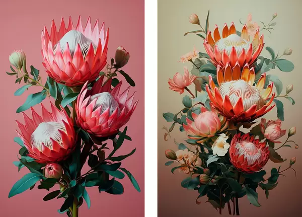 Poster Proteas ve dvou náladách: sytě růžovým pozadím a teplým olivovým přechodem Č. d01092