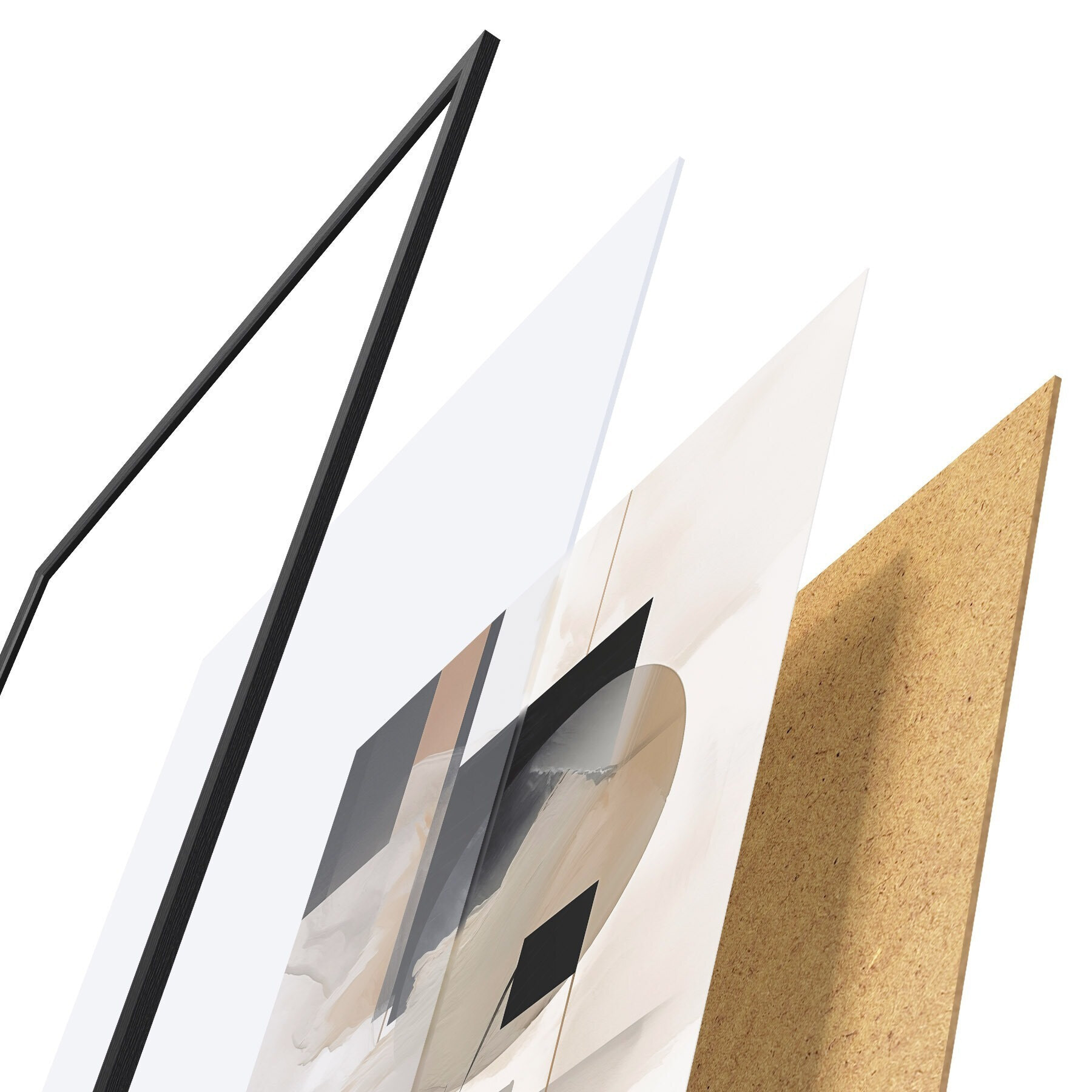 Plakát se skládá z rámu, plexiskla, tištěného obrazu a dřevotřískového podkladu. Díky úchytům na zadní straně lze plakát ihned zavěsit na zeď.