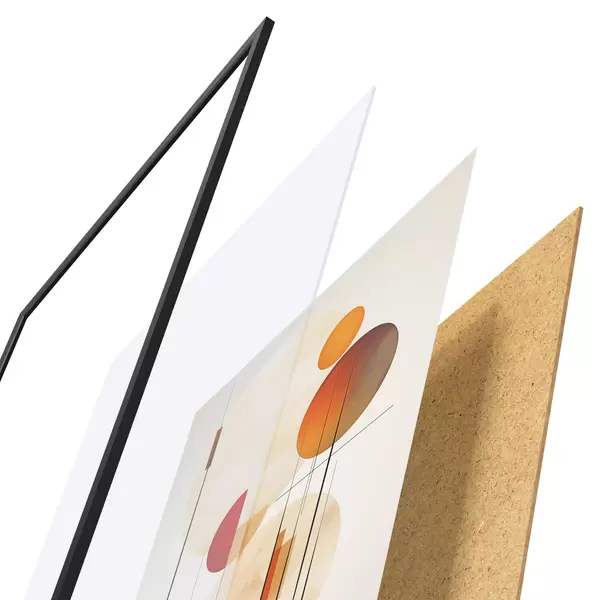 Plakát se skládá z rámu, plexiskla, tištěného obrazu a dřevotřískového podkladu. Díky úchytům na zadní straně lze plakát ihned zavěsit na zeď.