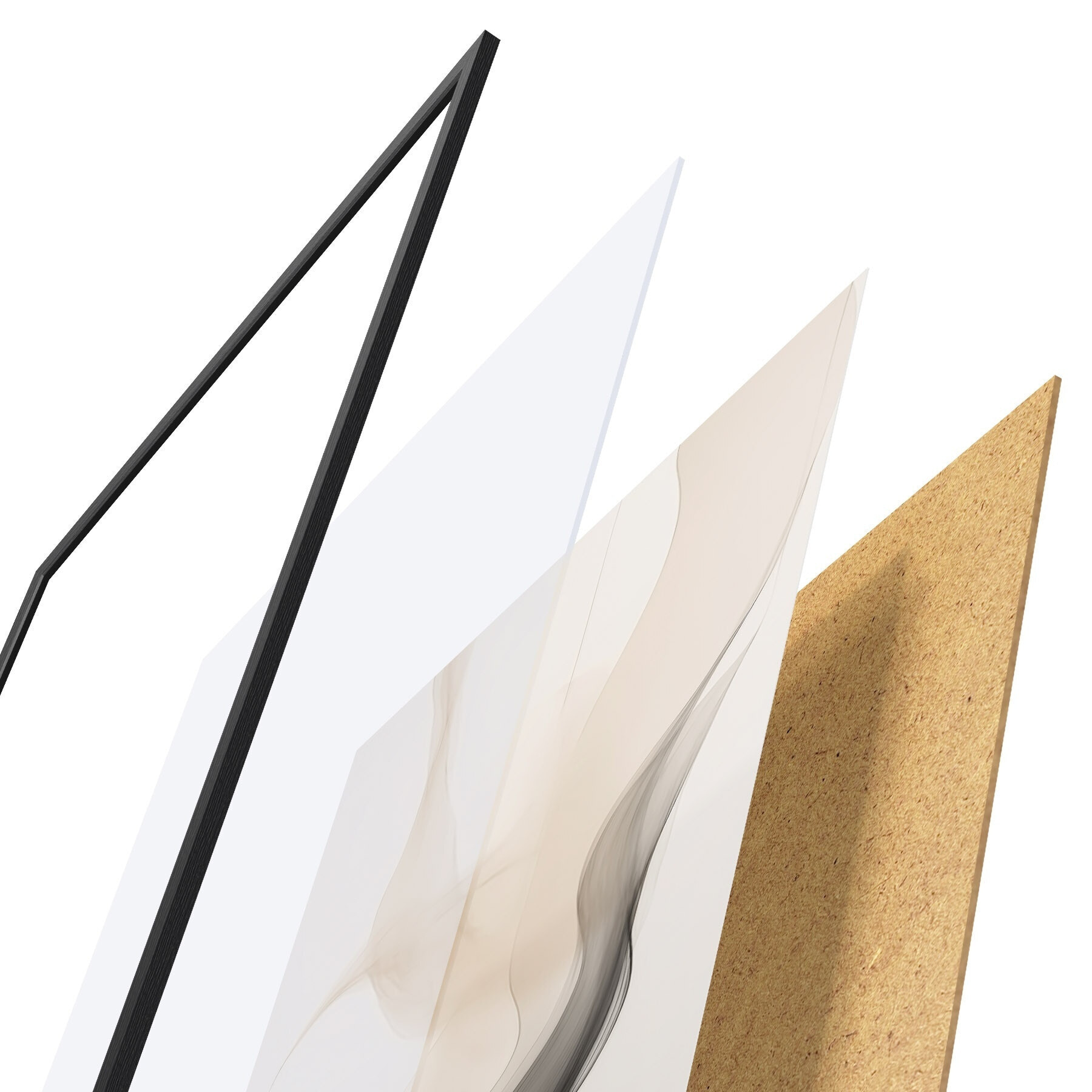 Plakát se skládá z rámu, plexiskla, tištěného obrazu a dřevotřískového podkladu. Díky úchytům na zadní straně lze plakát ihned zavěsit na zeď.