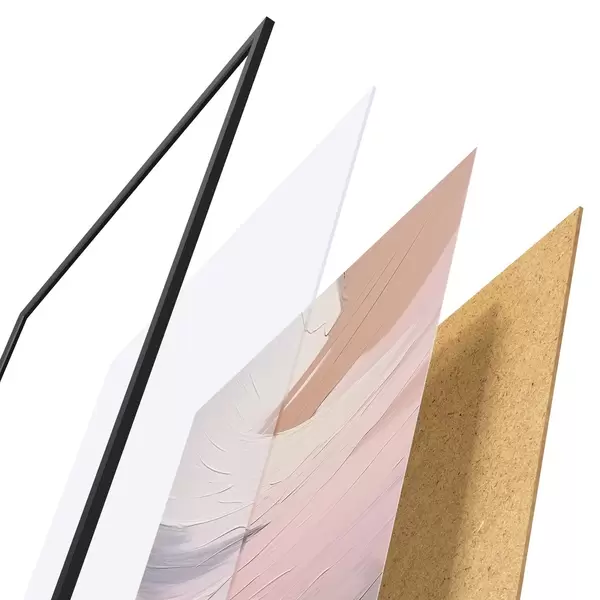 Plakát se skládá z rámu, plexiskla, tištěného obrazu a dřevotřískového podkladu. Díky úchytům na zadní straně lze plakát ihned zavěsit na zeď.