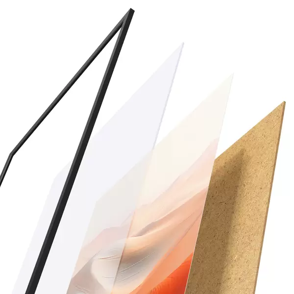 Plakát se skládá z rámu, plexiskla, tištěného obrazu a dřevotřískového podkladu. Díky úchytům na zadní straně lze plakát ihned zavěsit na zeď.