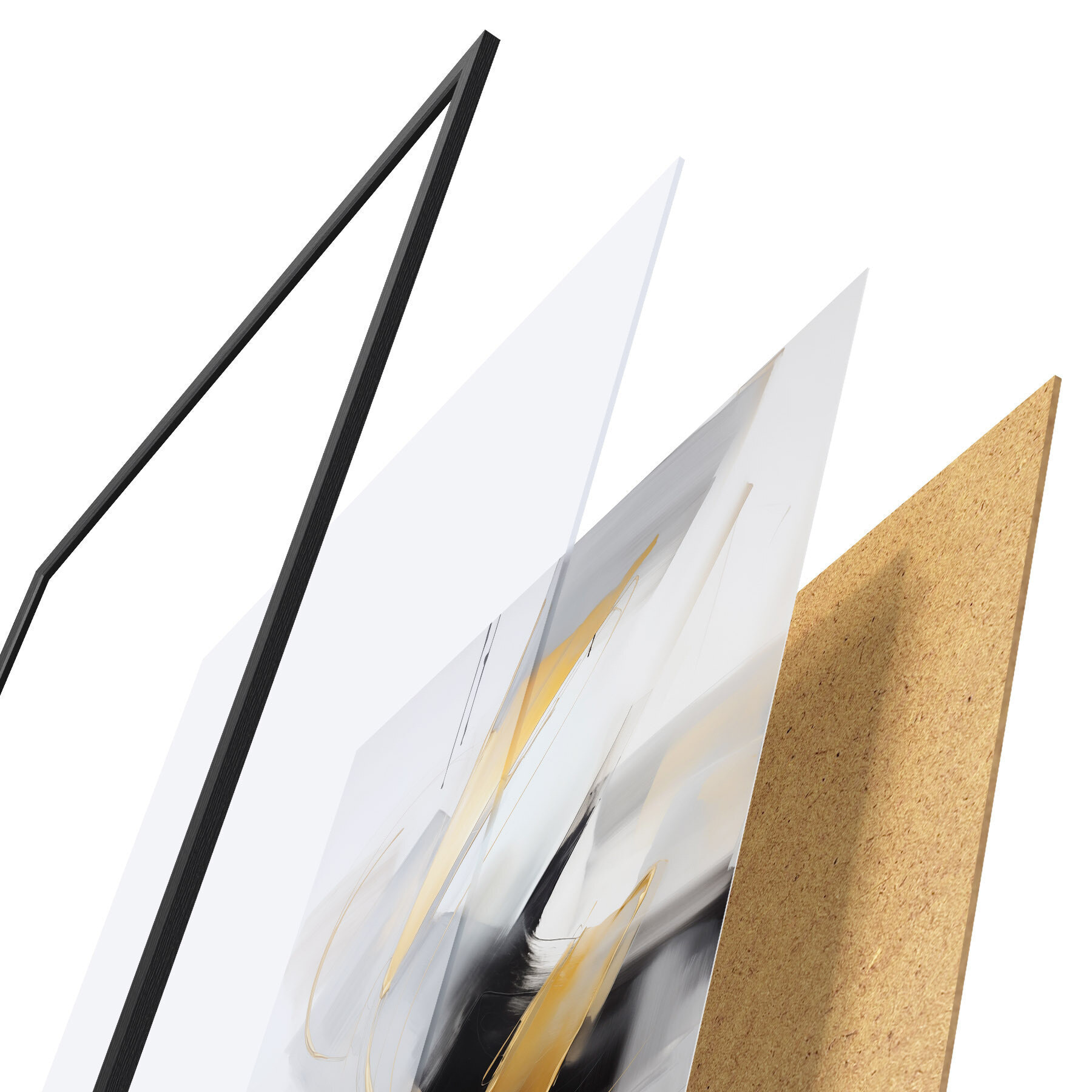 Plakát se skládá z rámu, plexiskla, tištěného obrazu a dřevotřískového podkladu. Díky úchytům na zadní straně lze plakát ihned zavěsit na zeď.