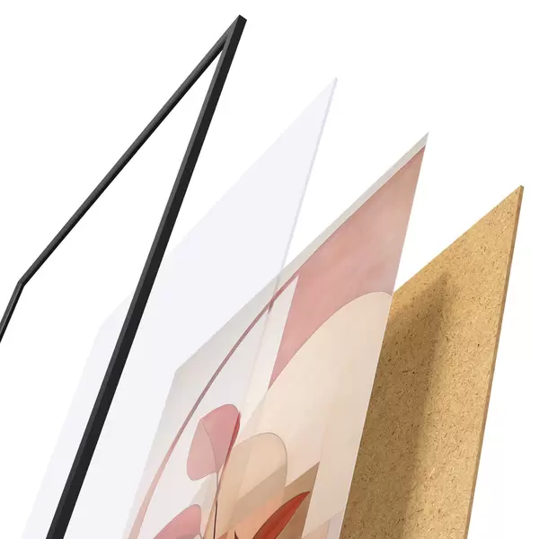 Plakát se skládá z rámu, plexiskla, tištěného obrazu a dřevotřískového podkladu. Díky úchytům na zadní straně lze plakát ihned zavěsit na zeď.