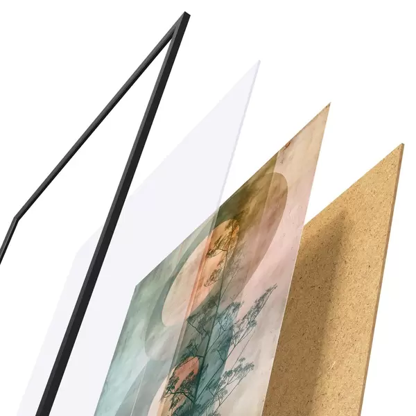 Plakát se skládá z rámu, plexiskla, tištěného obrazu a dřevotřískového podkladu. Díky úchytům na zadní straně lze plakát ihned zavěsit na zeď.