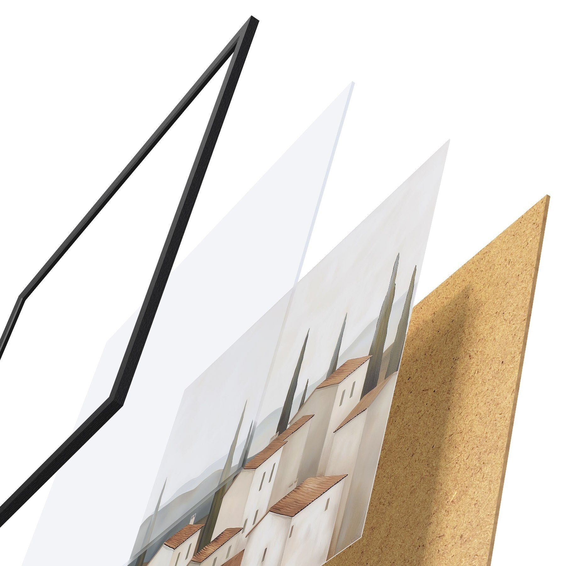 Plakát se skládá z rámu, plexiskla, tištěného obrazu a dřevotřískového podkladu. Díky úchytům na zadní straně lze plakát ihned zavěsit na zeď.