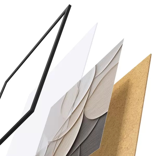 Plakát se skládá z rámu, plexiskla, tištěného obrazu a dřevotřískového podkladu. Díky úchytům na zadní straně lze plakát ihned zavěsit na zeď.